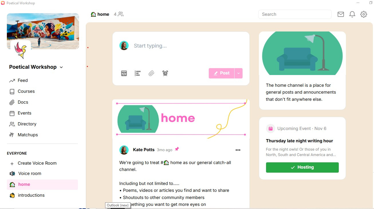 A few weeks ago I woke up at 2am worrying about the online poetry community I was trying to build. I’d been thinking and planning for a year or so, but finally putting my ideas into practice had become a huge struggle. Almost everything (the signup page, new resources and posts, editing video, organising the space, making it all as accessible as possible) took more time and effort than I’d imagined. I had a small, heroic, dedicated test team of members, all of whom I’d taught in other contexts, and they told me they liked and valued the space and resources—but it wasn’t a community. Months after my original planned launch date, I still wasn’t ready to properly launch. I’d asked fifty or so poets for their feedback on what I was offering. People were positive and helpful but often confused or uncertain. Who was the community designed for, exactly? Beginners? More advanced poets? What did it offer that wasn’t available from peer meet-up groups or on instagram for free?